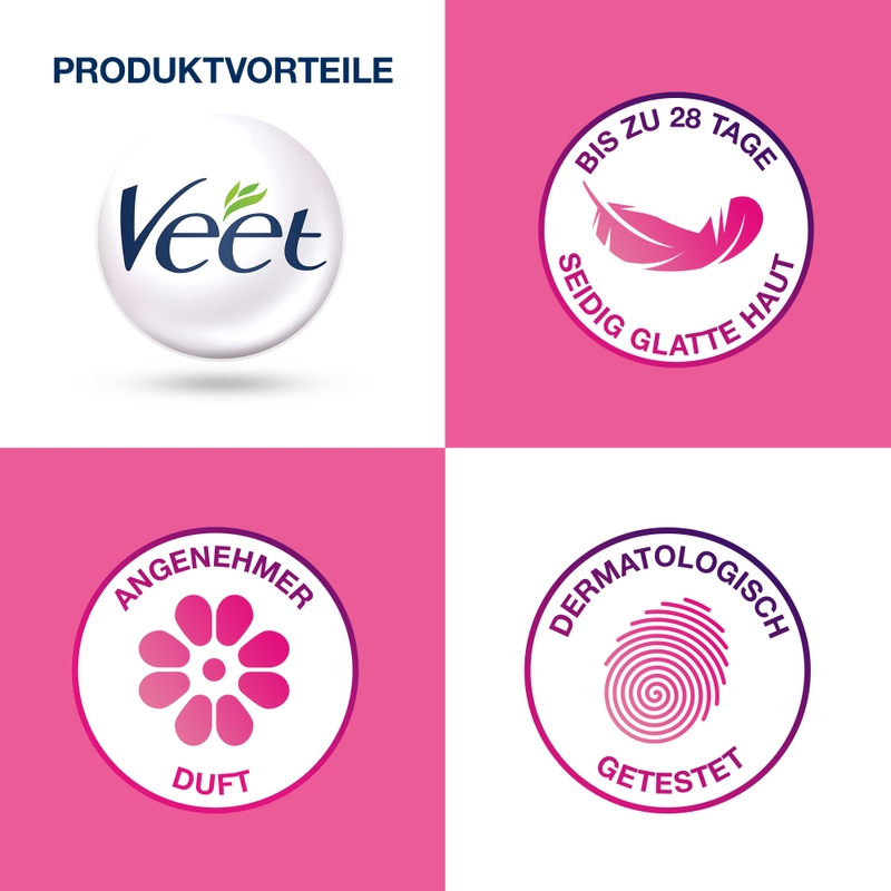 Das professionelle Wachs-Erhitzungs-System schmilzt das Wachs und hält es auf der idealen Temperatur für beste Ergebnisse auch Zuhause. Die warme Beleuchtung erzeugt eine Wohlfühlatmosphäre und zeigt an, wann das Wachs erwärmt ist. Unser Veet Spawax sorgt auch für einen angenehmen Duft nach Purpur-Lilien und süßer Feige und bringt dir damit ein verwöhnendes Anwendungserlebnis mit dem Ergebnis seidig-glatter Haut. Die Wachsscheiben sind für Beine, Arme, Bikinizone und Achseln geeignet. Das Wachs entfernt auch kleinere sture Haare, bereits ab einer Länge von 2 mm und sorgt bis zu 28 Tage glatte Haut.